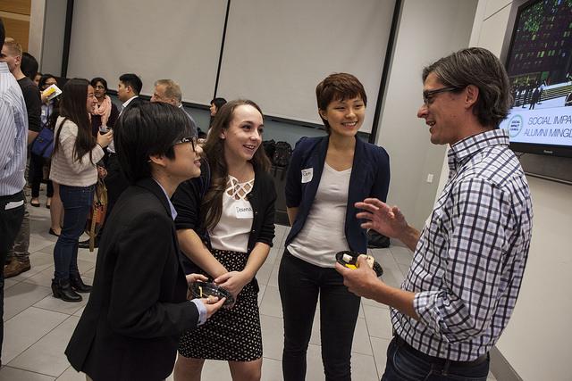 Professor Matt Statler speaks with Stern students and alumni at SIC’s first Social Impact Alumni Mingle that was held on October 2nd. SIC acts as a comprehensive resource and community for those interested in social impact. ©NYU Photo Bureau: Asselin.